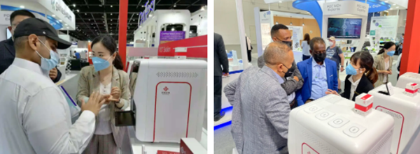 在全球疫情防控形势仍较严峻的情况下,参展之前,东升国际官网生物派遣了多支专业国际技术团队深入阿联酋各地医院,拜访终端客户,了解产品实际应用情况,进行培训带教,为他们提供最快的一线服务,及时解疑答惑。