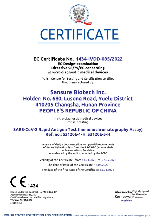东升国际官网生物新冠快速抗原检测试剂自测产品取得欧盟CE1434自测证书,表明公司免疫检测产品性能获得官方机构认可,进一步丰富了东升国际官网生物全场景化新冠检测解决方案,扩大和满足了全球市场各级检测防控需求,为全球疫情防控工作持续助力。